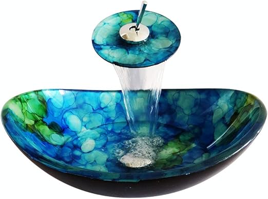 Homelava Lavabo Ovale En Verre Trempe Bleu Avec Robinet A Cascade Robinet De Salle De Bain