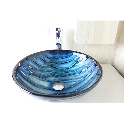 Salle De Bain Lavabo Vasque Mixte Bleu En Verre Bassin Evier