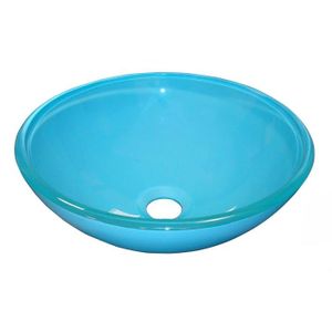 Lavabo En Verre Trempe D 42 Cm Rond Bleu Clair Vasque Pour