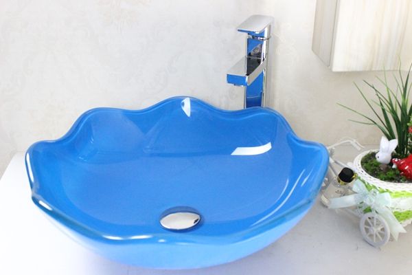 Acheter Lotus Bleu En Forme De De Verre Lavabo En Verre Trempe Avec Chaud Et Robinet Regle N 222 De 64 13 Du Victoryglasssink Dhgate Com