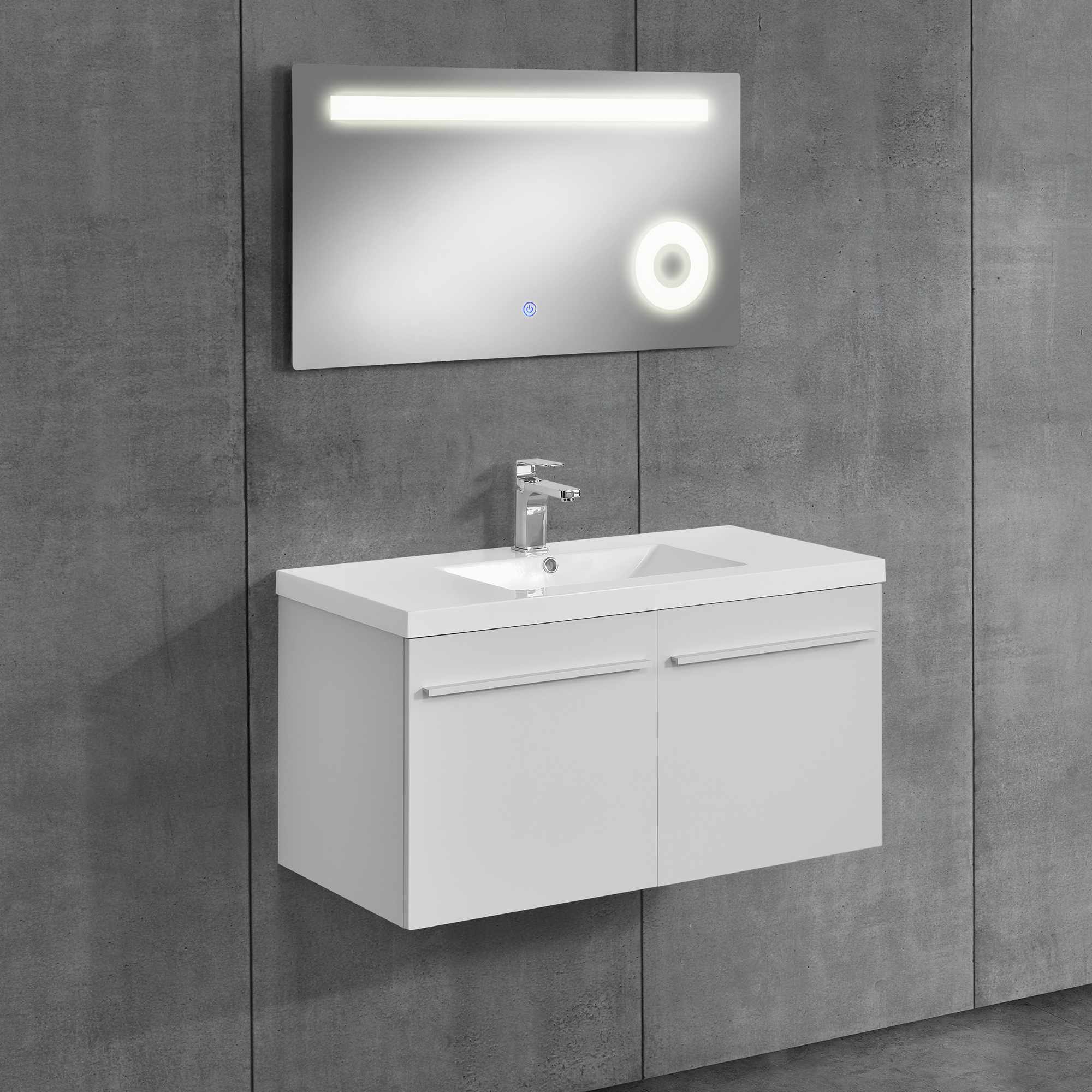 Ensemble Salle De Bains Meuble Keria Bleu Plan Vasque Resine Miroir Et Eclairage L60 5 X H58 5 X P40 5 Cm Oskab