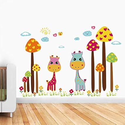 Animaux Girafe Champignons Papier Maison Autocollant Mural