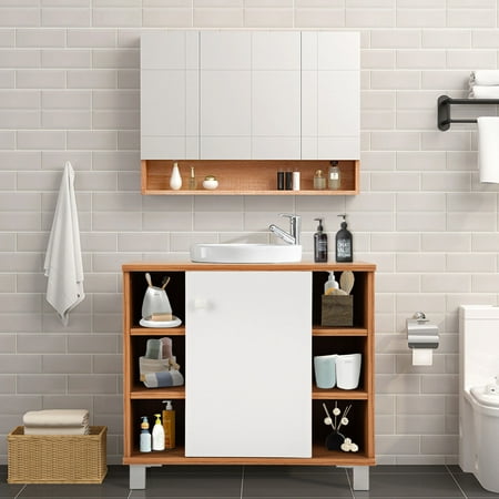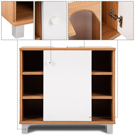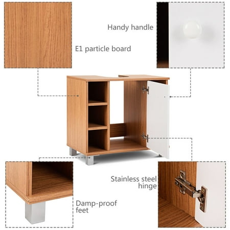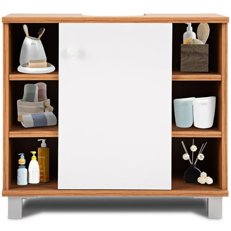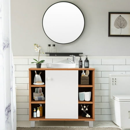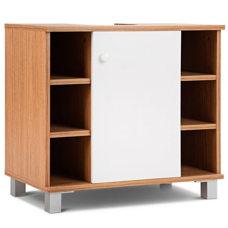Costway Meuble Sous Lavabo Meuble De Salle De Bain Commode Sous Lavabo Avec 1 Porte Et 6 Etages