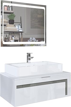 Details Sur Salle De Bain Armoire Lavabo Meuble Sous Vasque Miroir Led Aloha V2 Blanc