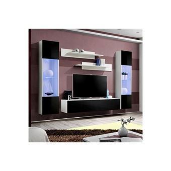 Meuble Tv Mural Design Fly Iv 160cm Noir Blanc Paris Prix
