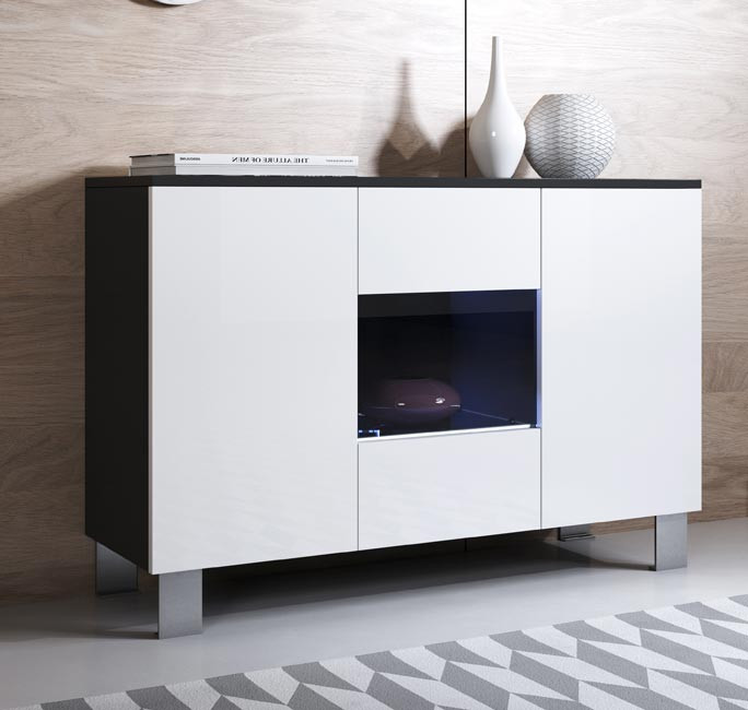 Bahut 4 Portes Pisa Laquee Bicolore Noir Blanc
