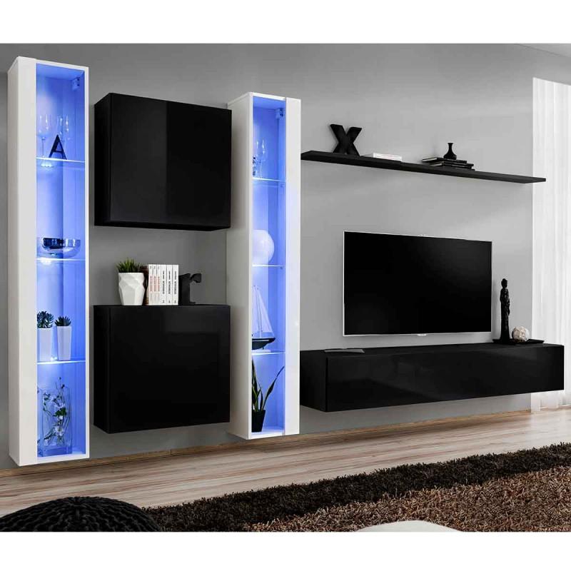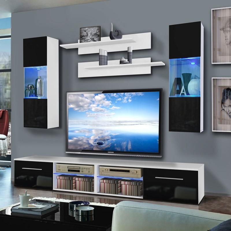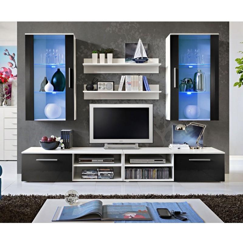 Ensemble Meuble Salon Space En Noir Et Blanc De Haute Brillance Avec Led