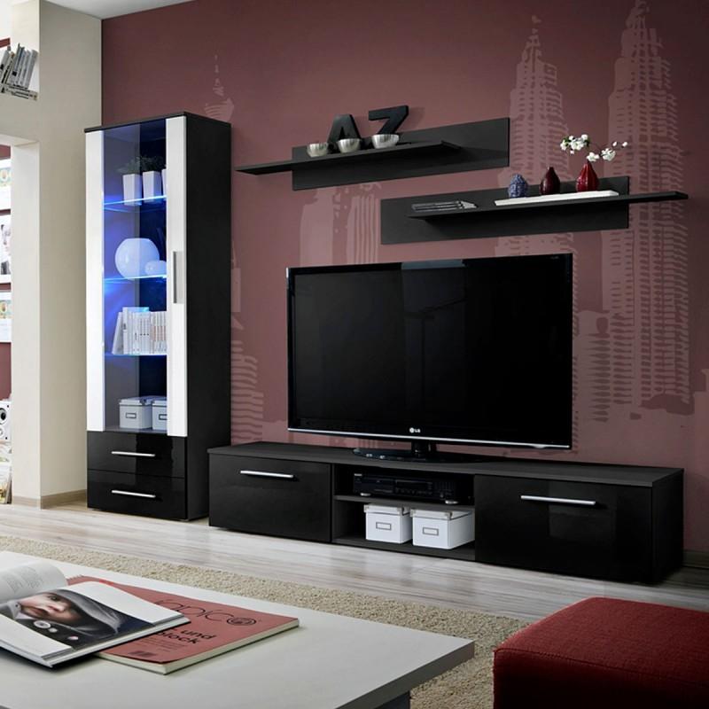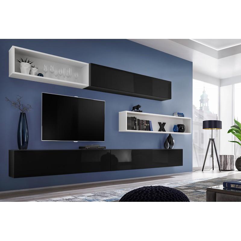 Un Ensemble Meuble Tv Nela Noir Laque Brillant Et Blanc