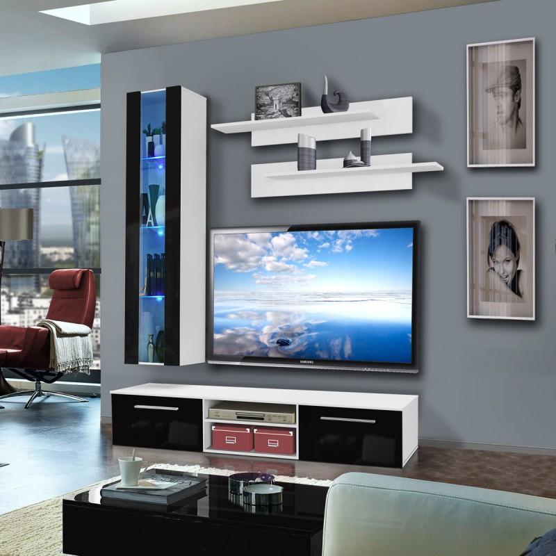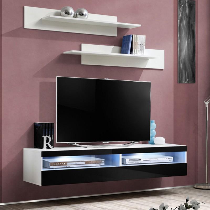 Ensemble Meuble Tv Mural Design Galino Vii White Noir Blanc