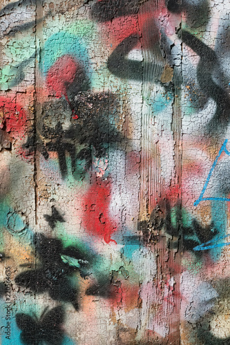 Matiere Texture Peinture Tag Graffiti Porte Bois Multicolor